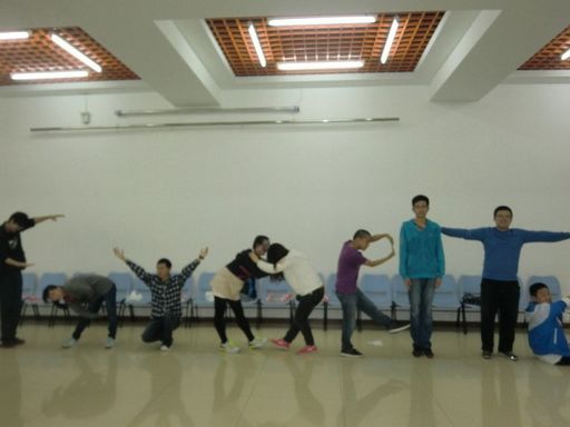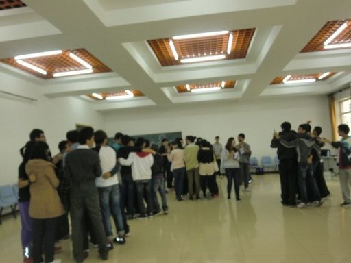 此次活动分为“找伙伴”、“选组长和口号”、“纸槽传球”、“第六感人数”、“摆单词”和“晋级”六个部分,采用累积分数的方法来确定优胜组和失败组。“找伙伴”让大家按照主持人所说的人数分好组,然后的“选组长和口号”便使得组内的成员彼此的熟悉,接下来的“纸槽传球”则是考验了同学们的团体协作能力,随后蒙住眼睛的“第六感人数”更是直接将活动的气氛推到了最高潮,经典游戏“摆单词”也是大家百玩不厌的,这更加的锻炼了同学们的团队合作意识,而最后要两队两队互相进行的“晋级”则是增强了同学们团队意识,经过几轮争斗,终于确定的失败组便是获得了工作人员精心准备的惩罚措施,活动也就在同学们的欢笑声中,伴着惩罚措施的结束而结束了。