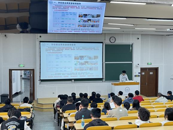 随后,高睿老师系统介绍了学校学院的丰富就业资源,并演示了如何高效利用各类平台获取信息。对于有志深造的同学,他则详细解读了硕博连读与博士申请的条件与流程,为大家指明了深造路径。