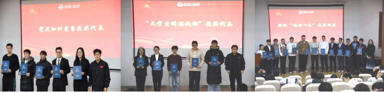 大会伊始,精选在线赌博网站大全 专职辅导员慕岩作年度思政工作总结致辞,她回顾了过去一年学院在党建引领及思政育人方面取得的丰硕成果,并对全体师生的辛勤付出表示感谢。随后,表彰环节依次进行。在“党史知识竞赛”颁奖中,获奖代表王佳兴分享了以史为鉴的学习感悟,在“大学生讲思政课”表彰环节,获奖代表马静颐讲述了团队如何将理论转化为鲜活叙事,实现思政课从“聆听”到“共鸣”的转变,在“两优一先”颁奖环节,学生代表刘少帅结合自身经历阐述了“一名党员就是一面旗帜”的深刻内涵。随后,慕岩老师、王乐阳老师、高睿老师为“优秀共产党员”“优秀党务工作者”“先进基层党组织”及优秀团队代表颁奖。